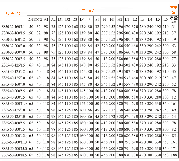| 80FSB-50 | 50 | 50 | 80 | 50 | 15/18.5 | 2900 | 6 | 53 |