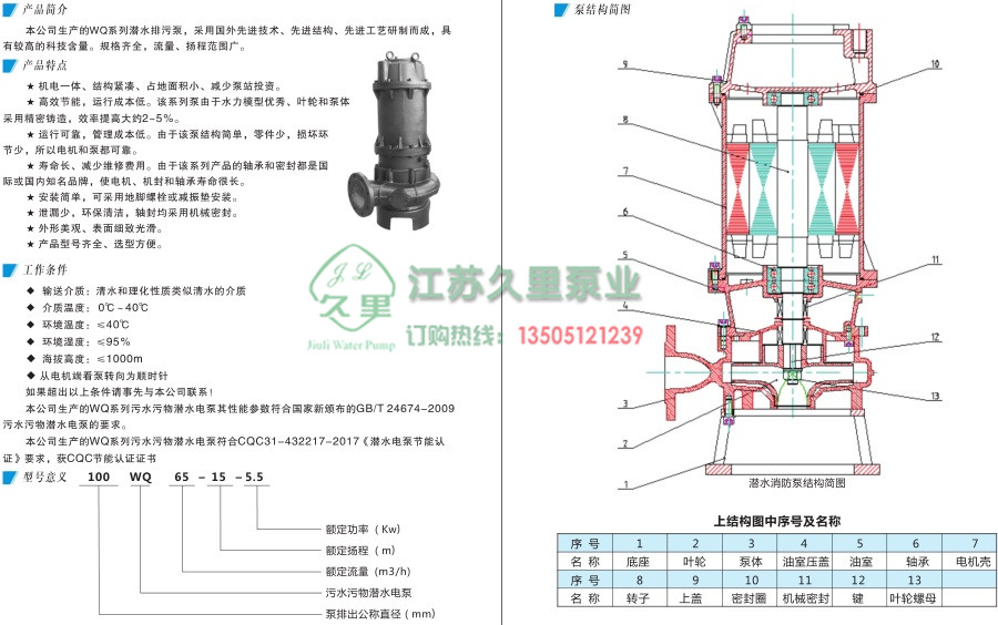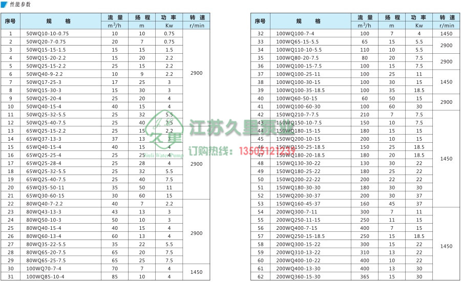 本公司生产的WQ系列潜水排污泵,采用国外先进技术、先进结构、先进工芝研制而成,具有较高的科技含置。规格齐全,流量、扬程范围广。
